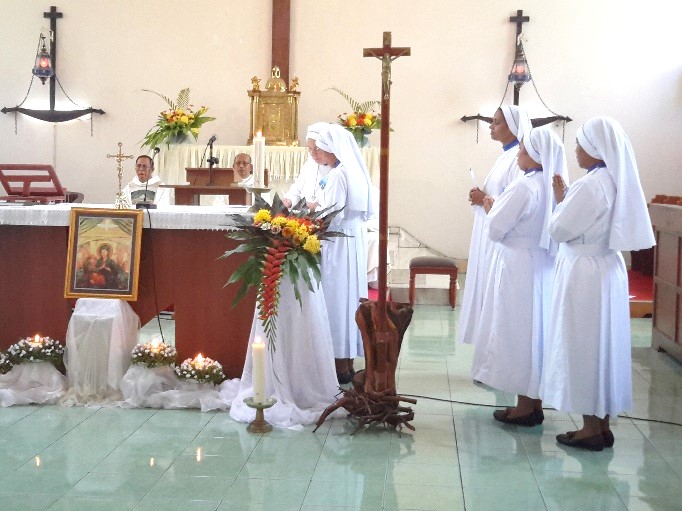 Il 10 settembre 2025 sono partito per il mio primo viaggio missionario nelle Filippine e in Indonesia, insieme a Madre M. Luisa Carminati e sr. M. Paola. Il nostro itinerario è iniziato nel modo più bello, con la celebrazione dell’Eucaristia. Dopo la Santa Messa, sr. M. Donatella e sr. M. Rincy ci hanno accompagnati all’aeroporto. La prima tappa del viaggio era nelle Filippine. Dopo un lungo viaggio siamo arrivati a destinazione, dove sr. M. Rini e sr. M. Siji ci hanno accolti all’aeroporto. Giunti nella comunità, le orfanelle, insieme a suor M. Rincy Theres, ci hanno dato il benvenuto con fiori e canti tradizionali. Mi sono sentito subito parte della Comunità, come in famiglia. Poco dopo abbiamo celebrato la Santa Messa di ringraziamento. Le nostre sorelle dedicano il loro tempo alla scuola, alle orfanelle e a varie attività nella comunità, nella parrocchia e nella diocesi. Il giorno seguente abbiamo celebrato la Santa Messa nella nostra scuola, insieme al parroco. I ragazzi hanno partecipato con grande attenzione, con le mani giunte e un atteggiamento di sincera devozione. Dopo la celebrazione hanno ripreso le attività scolastiche. Mi ha colpito tanto la loro semplicità, il sorriso e la loro accoglienza. Un giorno siamo andati in gita con le orfanelle e gli insegnanti: è stato un momento di gioia, fraternità e condivisione. In un’altra giornata abbiamo visitato alcune famiglie nei luoghi dove sono state costruite le case per i poveri. Ho visto molta povertà materiale, ma allo stesso tempo una grande ricchezza spirituale. Un giorno le ragazze hanno organizzato una serata di fraternità con canti, danze e momenti comici. Al termine della serata, Madre Luisa e sr. M. Paola ha offerto dei piccoli pensierini per incoraggiare e ringraziare le ragazze. Ricordo anche Jeffry, l’autista della comunità: una persona umile e sempre disponibile. Insieme a lui ho piantato sette piante di banana. Spero che stiano crescendo bene! Dopo le belle esperienze vissute nelle Filippine, siamo partiti per l’Indonesia. Il viaggio di andata e ritorno per l’Indonesia è stato faticoso. Gli aeroporti hanno subito chiusure a causa del maltempo e dell’attività dei vulcani. Per due giorni abbiamo dovuto fermarci in una comunità delle Suore Domenicane del Rosario a Kupang. Successivamente siamo partiti per la comunità di Maumere, dove siamo stati accolti da suor M. Jisha (direttrice della comunità), suor M. Bincy (maestra delle novizie) e altre sorelle. Le novizie, le postulanti e le aspiranti ci hanno dato il benvenuto con un ballo tradizionale, offrendoci fiori e una sciarpa tradizionale. A Maumere ci sono due comunità: una casa di formazione per le novizie, gestita da suor Bincy, e un’altra per le aspiranti e le postulanti. Suor Bincy e suor Jisha dedicano il loro tempo alla formazione delle ragazze, che stanno ricevendo un’ottima preparazione, secondo l’insegnamento del nostro Padre Fondatore Don Umberto Terenzi e di Madre Elena Pieri. Noi contribuiamo con le preghiere quotidiane, pregando in particolare per le vocazioni. Il 23 settembre abbiamo celebrato la Messa e la benedizione degli abiti religiosi. Dopo la benedizione, la Madre ha consegnato gli abiti alle novizie. Il 24 settembre, Beata Vergine Maria della Mercede, è stato il giorno solenne della Prima Professione Religiosa: un momento di gratitudine a Dio, emozione e gioia. Un giorno prima sono arrivati i genitori e i parenti delle neo-professe per partecipare alla Prima Professione Religiosa delle loro figlie. Erano persone semplici, vestite con gli abiti tradizionali, non ricche, ma sorridenti e cordiali. Non hanno portato grandi doni, ma ciò che avevano: un po’ di riso, delle verdure… Un esempio di semplicità e di cuore generoso per tutti noi. La sera stessa, poi, le ragazze hanno organizzato canti e balli in questo giorno di Festa per tutta la Comunità. Il 26 settembre quattro ragazze sono entrate nel noviziato. Sono stato molto felice di aver potuto partecipare a queste celebrazioni insieme alle sorelle. Preghiamo e sosteniamo le missioni del Divino Amore! È bello vedere come noi, Figli e Figlie della Madonna del Divino Amore, sentiamo viva la nostra missione! Sarebbe bello, come Famiglia del Divino Amore, organizzare qualche giornata missionaria nelle nostre comunità o parrocchie, per far conoscere e sostenere le nostre missioni, soprattutto nelle parrocchie dove i sacerdoti Oblati svolgono il loro servizio. Essere Figli e Figlie della Madonna del Divino Amore significa vivere sotto lo sguardo materno di Maria, imparando a servire gli altri con amore, semplicità e gioia. Durante il mio viaggio missionario ho potuto vedere quanto questo Amore si manifesti nelle persone e nelle comunità: nella gioia, nella dedizione, nei momenti di preghiera e nella fraternità condivisa. Ogni missione ci ricorda che la vera ricchezza non è nelle cose materiali, ma nell’Amore di Dio e nella comunione tra noi. Siamo chiamati ad essere missionari del Vangelo nel Divino Amore, portando ogni giorno carità, speranza e fraternità, e testimoniando la presenza viva di Gesù e Maria. Affidiamoci alla Santa Madre del Divino Amore, perché ci sostenga e ci renda strumenti della Sua consolazione, della Sua gioia e della Sua luce per chiunque incontriamo! Ave Maria, avanti e coraggio!